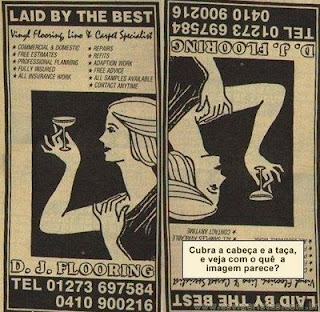 Na figura acima se invertemos o desenho, cobrirmos a cabeça e a taça da mulher veremos que ela está tocando em seu orgão sexual.